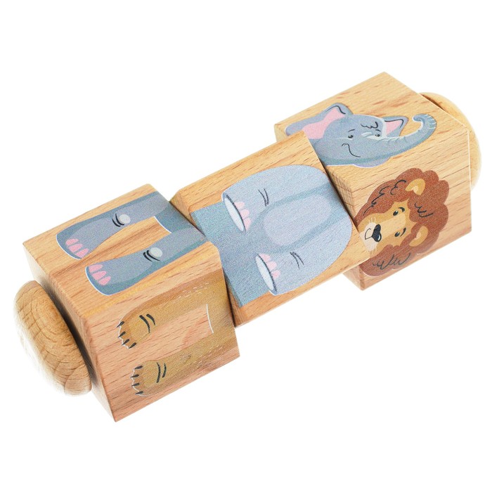 Кубики на оси направлены на развитие логики и образного мышления малышей. Поворачивая кубики, ребёнок тренирует мелкую моторику рук и узнаёт названия экзотических животных.