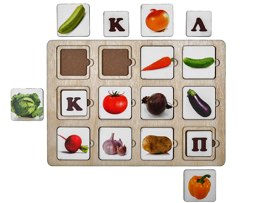 4. Изучайте понятия «верх» - «низ», «справа» - «слева». Попросите ребенка выложить в верхний ряд планшета: помидор, огурец, редис и перец, а в нижний ряд: свеклу, морковь, капусту и картофель. Попросите ребенка назвать овощи, которые находятся справа на планшете; слева на планшете…