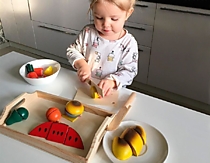Что нужно, чтобы воспитать маленькую хозяйку? В первую очередь - тренировка с раннего возраста! Мы разработали красивый и необычный игровой набор "Готовим завтрак", куда входят игрушечные продукты, деревянные ножи, разделочная доска. Ребенок 2-6 лет может имитировать движения взрослых, нарезая продукты (которые на самом деле склеены при помощи липучки), а заодно комментировать выполняемые действия, тем самым обогащая свой словарный запас. Все элементы выполнены из экологически чистых материалов; игра красиво и надежно упакована, подойдет в качестве подарка на любой праздник.