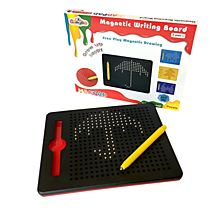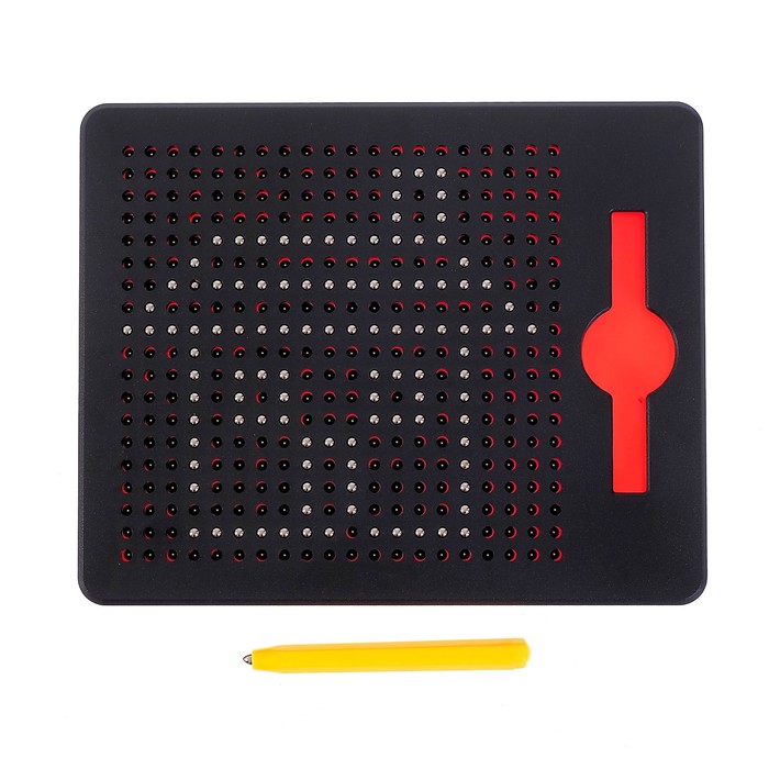 Игра «Магнитное рисование» поможет обучить ребёнка письму в дошкольном возрасте. В комплект входит планшет с железными шариками внутри и ручка-магнит. Поверхность для рисования состоит из небольших отверстий. Если провести по ним стиком, шарики притянутся, заполнят собой дырочки, получится линия. Стоит провести ладошкой по полю — и оно снова станет чистым.Поле позволяет рисовать всё, что придёт в голову.
