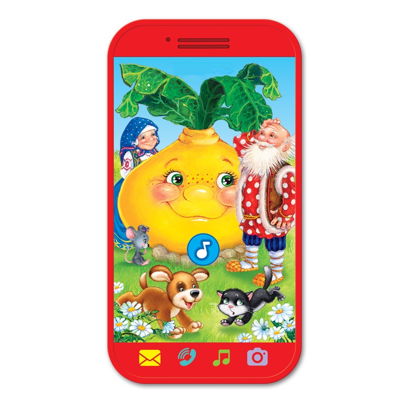 Компактный мини-смартфончик так удобно носить с собой! Теперь любимые герои всегда будут рядом и порадуют малыша весёлыми песенками («Репка», «Заиграй-ка, балалайка!», «Ладушки», «Мышка», «Калинка») и хорошо известной сказкой про репку.