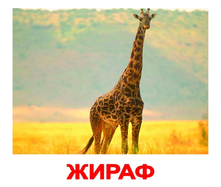 Карточки животных намеренно сделаны не на белом фоне, а в естественной среде обитания, поскольку такие карточки не только гораздо эстетичнее, но и дают малышам представление о среде обитания животного. Лишних деталей, мешающих восприятию, на картинках нет.
