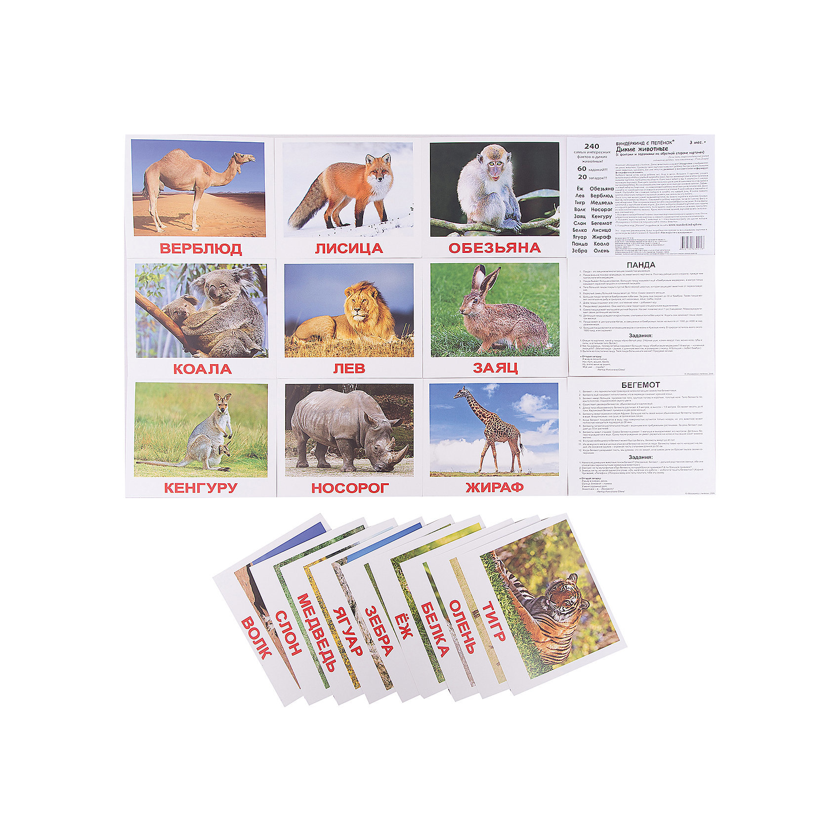 20 карточек с фотографиями диких животных для детей от рождения до 8 лет на качественном картоне. Размер каждой карточки 16.5см*19.5см. Подробная инструкция прилагается.