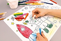 Пластиковая раскраска может служить защитным покрытием для обеденного или рабочего стола, на ней можно лепить, творить и не бояться за поверхность стола.